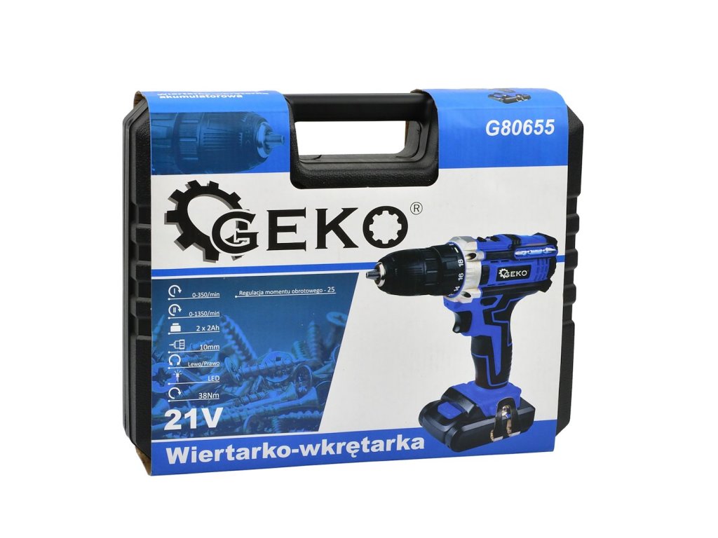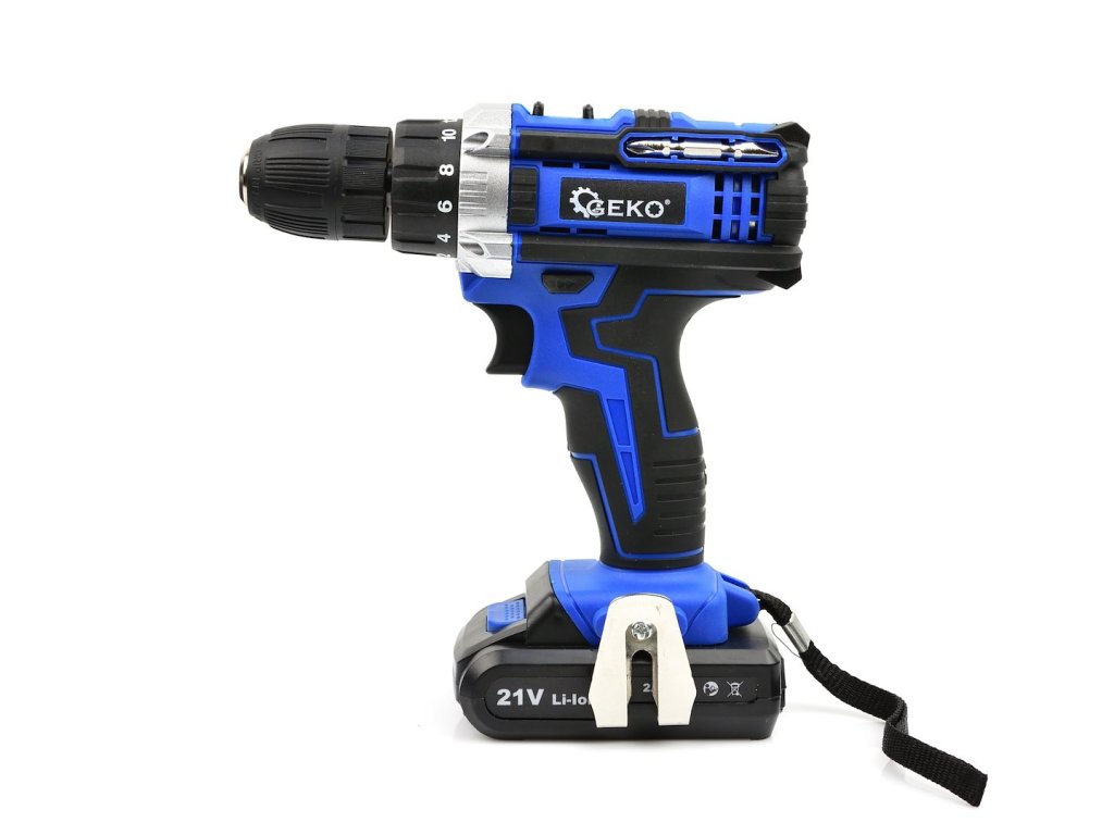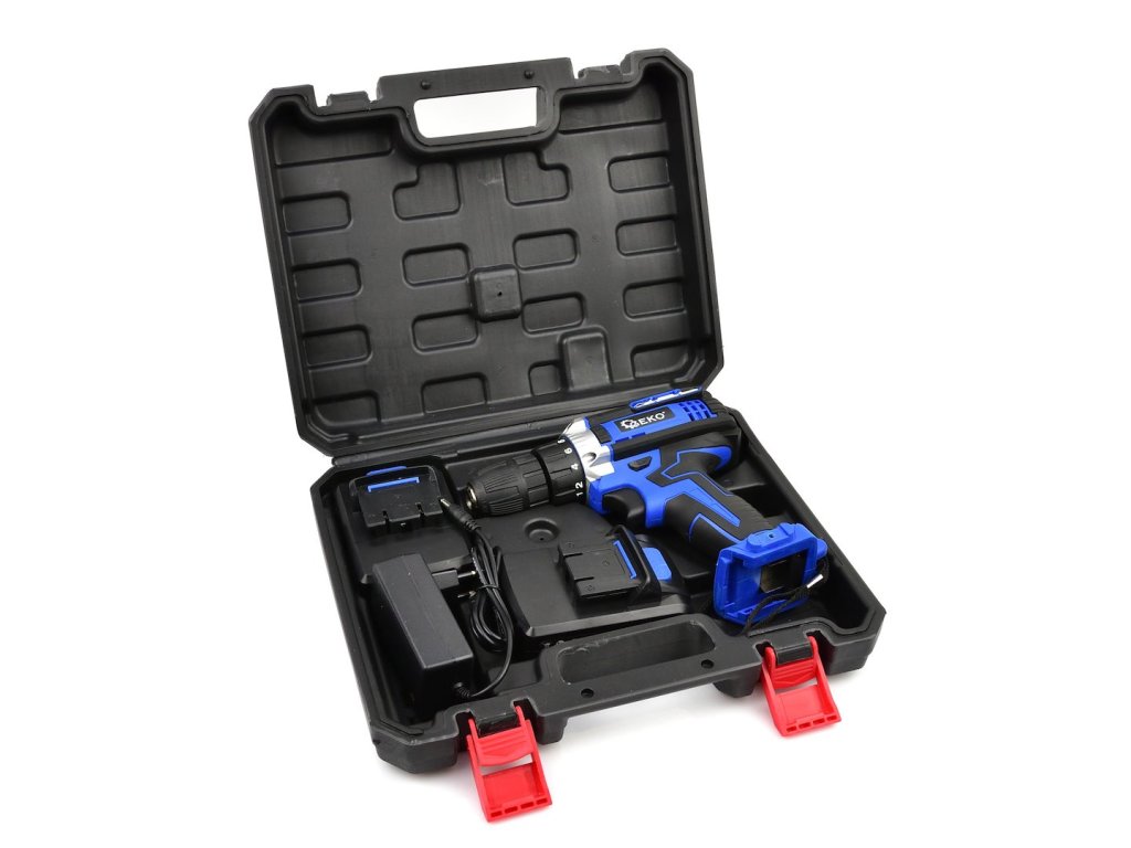 Akumulátorový vŕtací skrutkovač 21 V. Náradie je ideálne na vŕtanie do rôznych materiálov a na skrutkovanie skrutiek, vrutiek, skrutiek do plechu a pod. Sada obsahuje dve batérie s kapacitou 2 Ah, nabíjačku a praktický plastový kufrík.