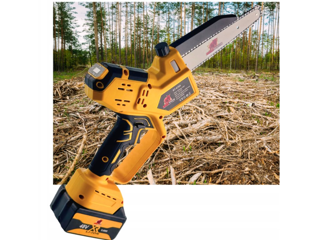 Akumulátorová reťazová píla 8″ + 10″ BullTech 48 V, 2×5 Ah, LCD, automatické umývanie, kufor