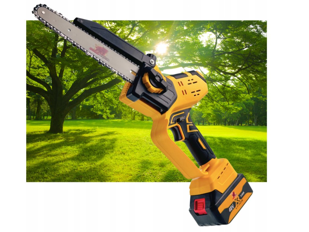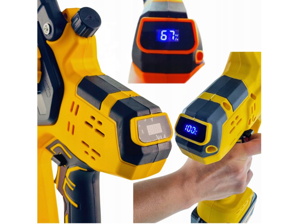 🔥 Akumulátorová reťazová píla 8″ + 10″ - dve čepele, 2× batéria, LCD displej a puzdro v balení