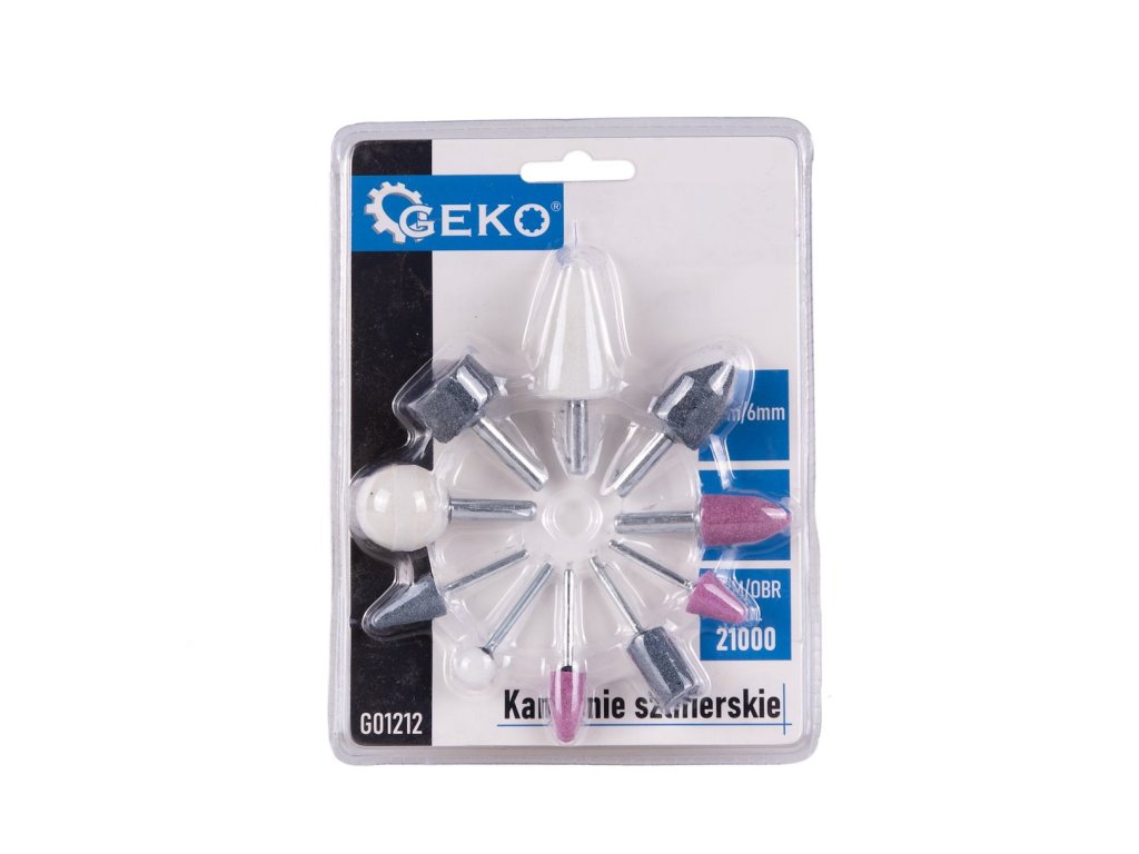 Sada brúsnych kameňov geko, 10 ks, rôzne typy. Každý kameň v súprave sa vyznačuje vysokou kvalitou spracovania, ktorá umožňuje presné a efektívne brúsenie.