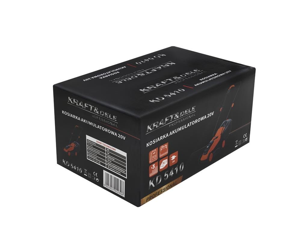 - TECHNICKÝ VÝROBOK Značka: KRAFT & DELE Model: KD5410 Napätie: 20 V Batéria: 6,0 Ah Objem nádrže na trávu 30 l Nastavenie kosenia: 25-65 mm Kryt stroja je vyrobený z plastu, vďaka čomu je veľmi ľahký. To má veľmi pozitívny vplyv na nedostatočnú únavu pri manévrovaní a riadení kosačky. Malé rozmery umožňujú dosiahnuť miesta, ktoré sú so širokými a ťažkými dieselovými kosačkami ťažko dostupné. Stroj je vybavený priestranným košom na kosenie trávy s objemom 30 litrov. Dizajn koša sme starostlivo premysleli, je vyrobený z plastu a má rukoväť na prenášanie. Zloženie súpravy: