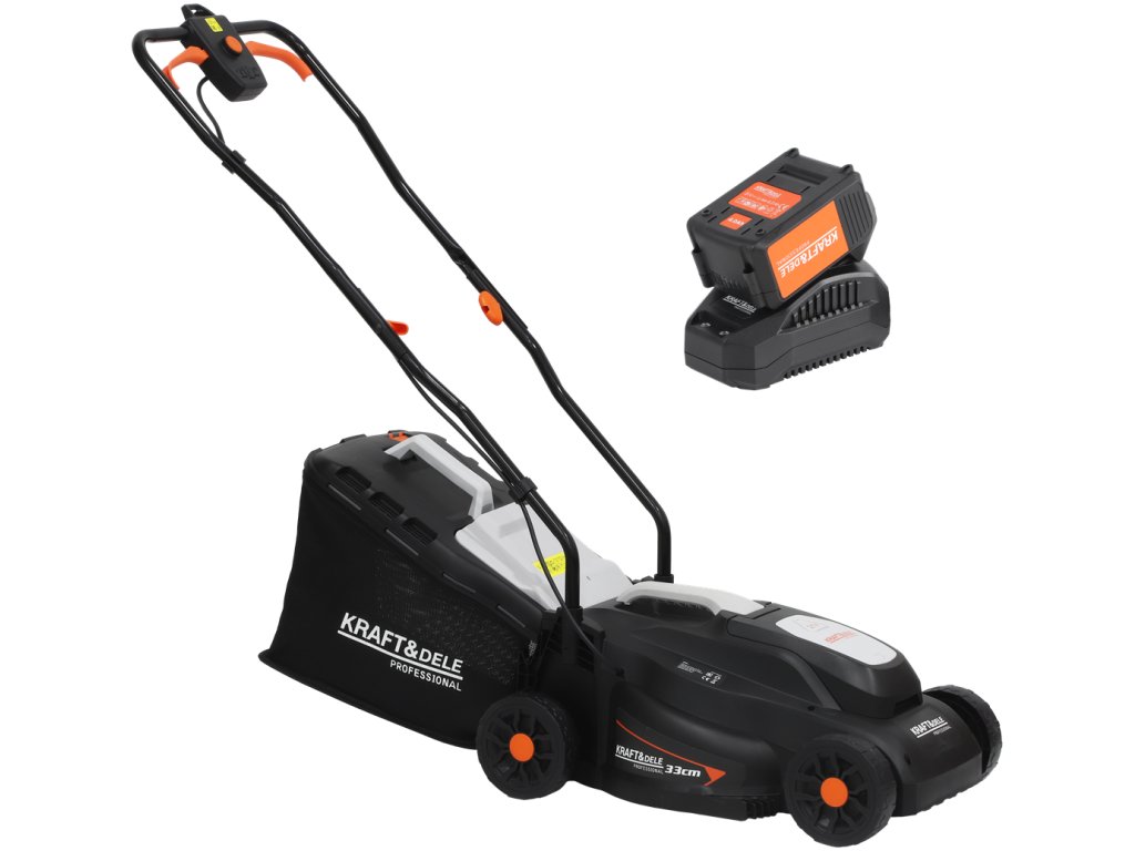 - TECHNICKÝ VÝROBOK Značka: KRAFT & DELE Model: KD5550 Napätie: 21 V Batéria: 4,0 Ah Objem nádrže na trávu 32 l Nastavenie kosenia: 25-65 mm Kryt zariadenia je vyrobený z plastov, čo umožnilo vytvoriť zariadenie s hmotnosťou 10 kg. Táto hodnota má veľmi pozitívny vplyv na neunavenie pri manévrovaní a riadení kosačky. Malé rozmery umožňujú dosiahnuť miesta, ktoré sú pre široké a ťažké dieselové kosačky ťažko dostupné. Stroj je vybavený priestranným košom na pokosenú trávu s objemom 32 litrov. Dizajn koša sme starostlivo premysleli, je vyrobený z plastu, s rukoväťou na prenášanie. Zloženie súpravy: