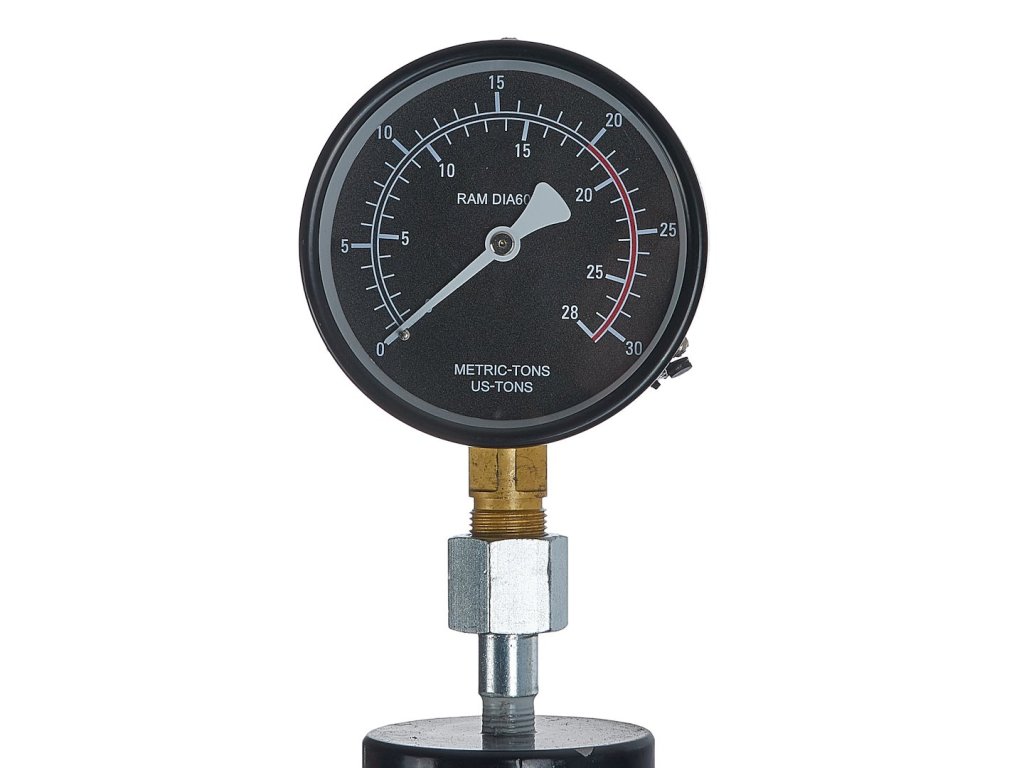 Hydraulicko-pneumatický lis s tlakom 20T s manometrom od poľskej spoločnosti GEKO. Vhodné pre opravárenské a servisné dielne, priemyselné podniky a poľnohospodárstvo. Rám, ktorý drží celú konštrukciu, bol dodatočne zosilnený, čo zabezpečuje odolnosť voči mechanickému poškodeniu.