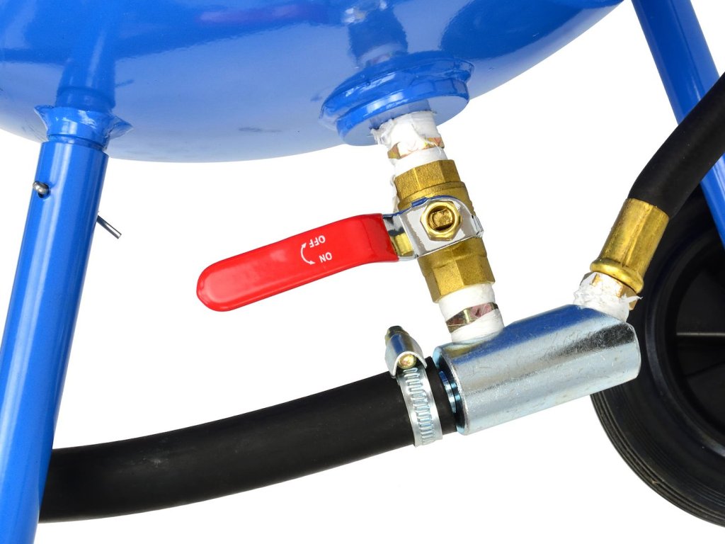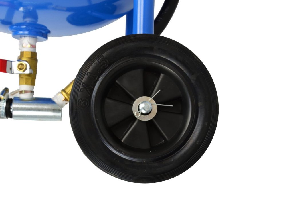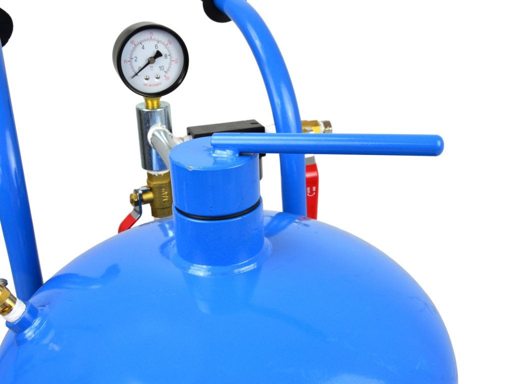 Mobilný tlakový pieskovač (sifón) s objemom 38 litrov. Ideálny na renováciu, údržbu, práce v karosárskych a mechanických dielňach a výrobných závodoch. Vybavená tryskami a pieskovacou pištoľou, uzatváracím ventilom, manometrom, pieskovacou hadicou, lievikom..