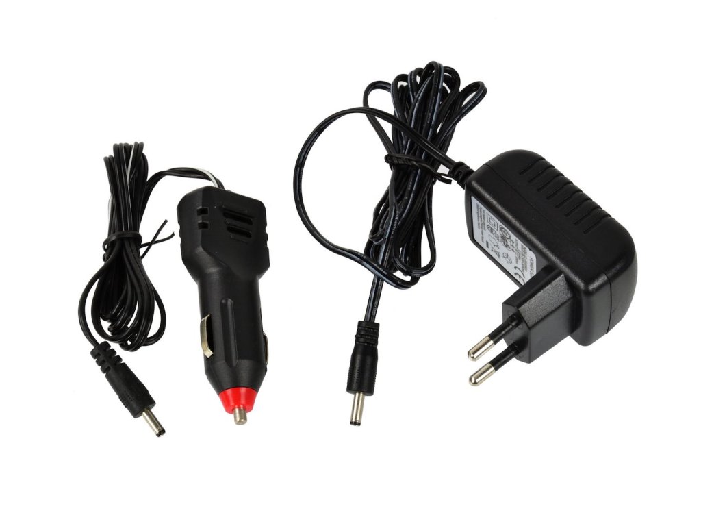 - 230 V sieťová nabíjačka a 12 V nabíjačka do zásuvky cigaretového zapaľovača sú súčasťou dodávky