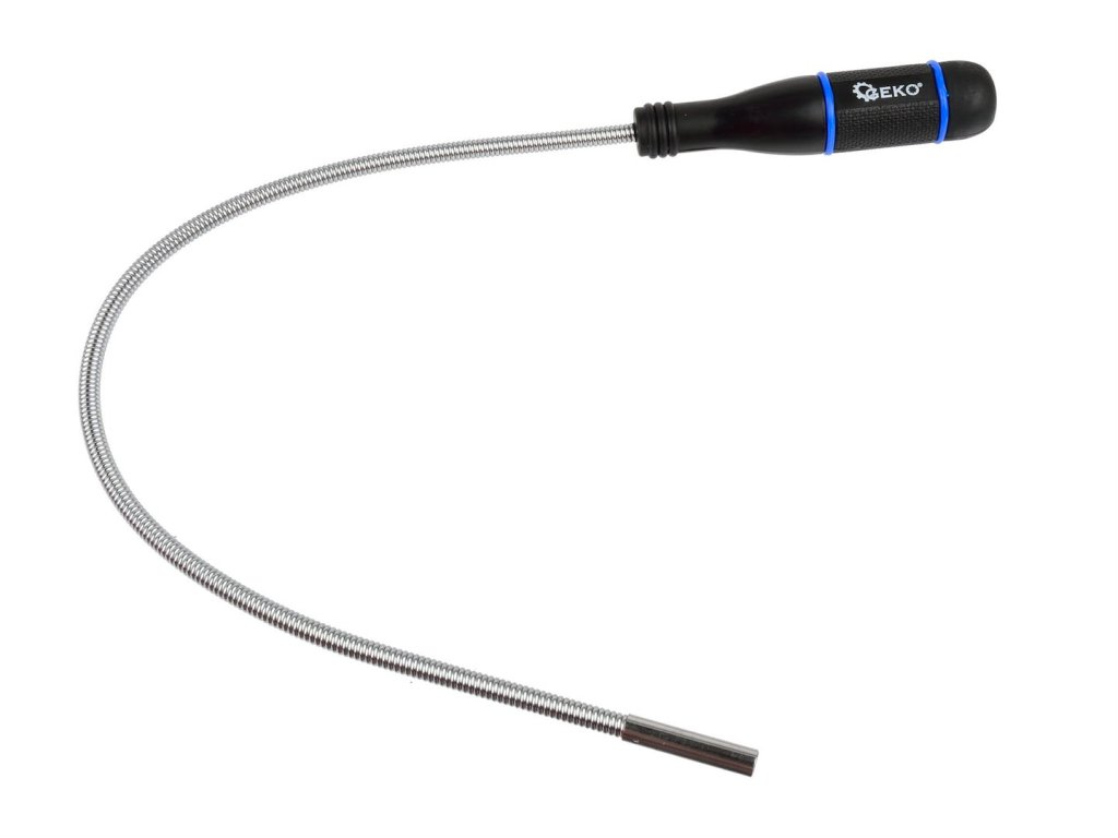 Jednoduchý a účinný nástroj, ktorý je nevyhnutný v každej dielni alebo garáži. Keď vám niečo kovové (skrutka, závlačka atď.) spadne na ťažko prístupné miesto, magnetické chápadlo vás v priebehu niekoľkých okamihov dostane z problémov. Pružnú časť chápadla možno ľubovoľne tvarovať, čo výrazne uľahčuje prístup k strateným predmetom.