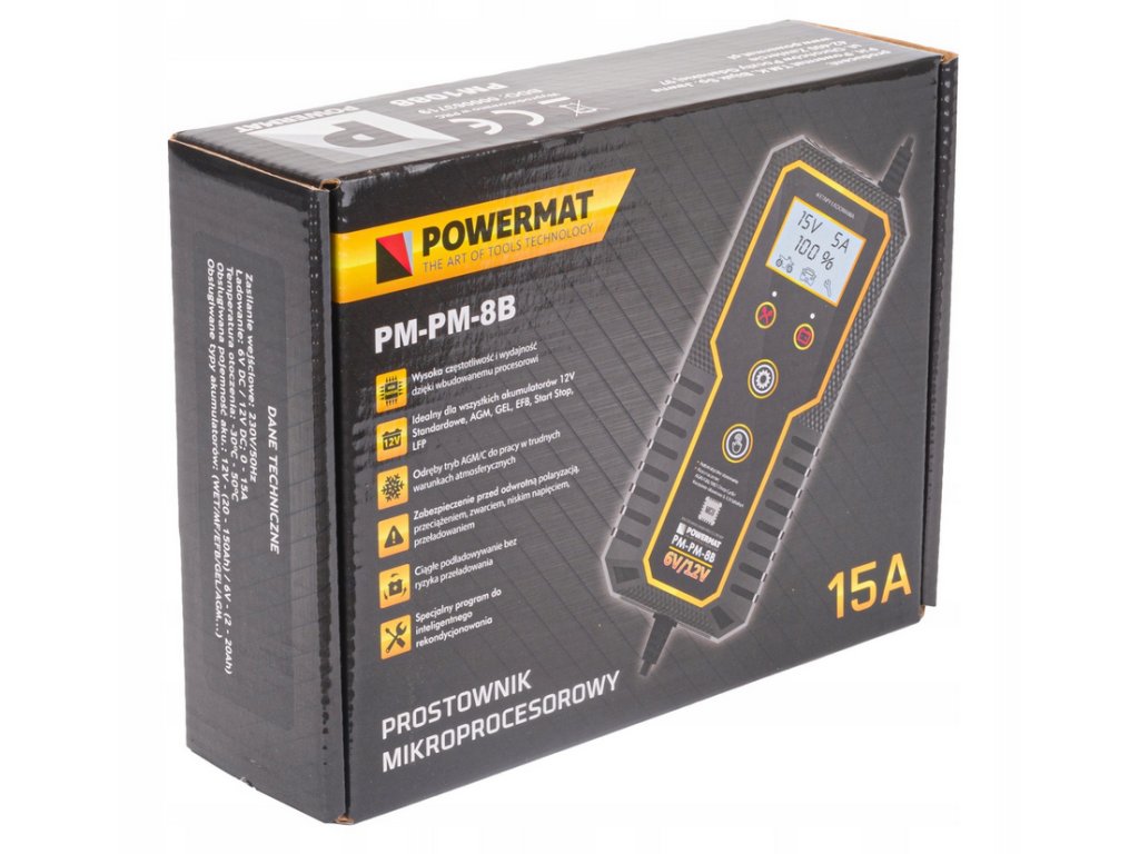 Vysokokvalitná, automatická a presná mikroprocesorová nabíjačka batérií POWERMAT PM-PM-8B je dokonale vhodná pre profesionálne garáže a dielne, ako aj pre domáce garáže. Zariadenie je možné nabíjať napätím 6 V a 12 V.
