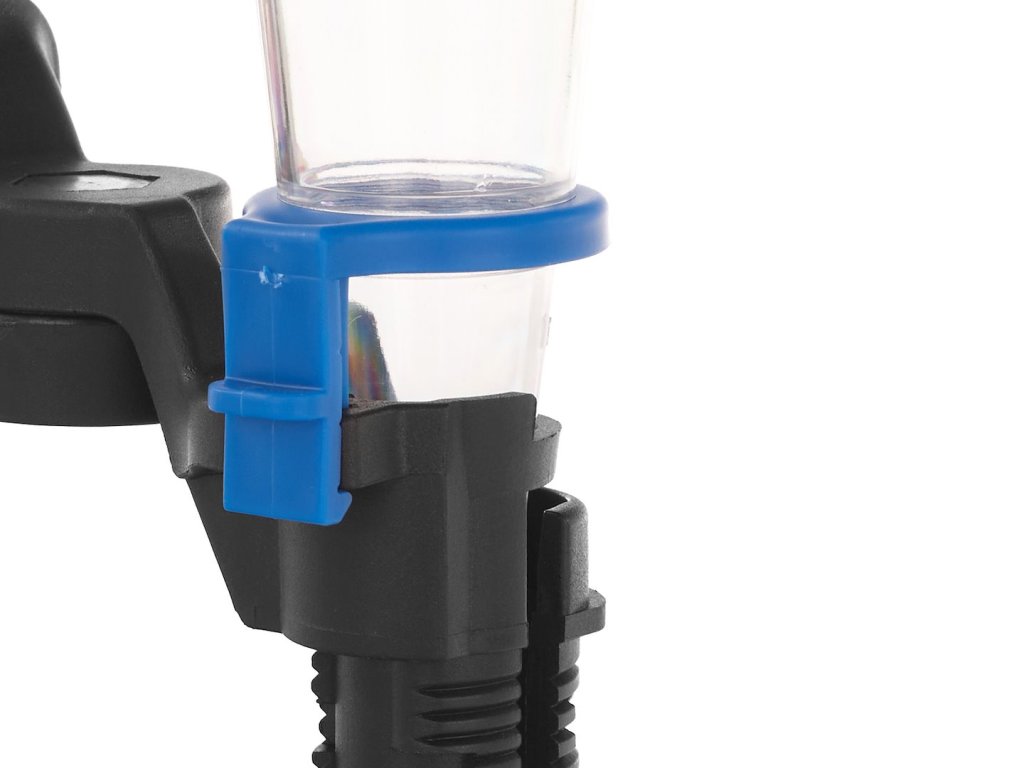 Nádoba na motorový olej so špeciálnym držiakom. Je vyrobená z nylonu a PP, vďaka čomu je odolná voči oleju a iným prevádzkovým kvapalinám. Držiak / upevňovacia spona sa automaticky prispôsobí priemeru plniaceho otvoru, nie je potrebné držať lievik v ruke. Priehľadná spodná komora lievika umožňuje presnú kontrolu pri nalievaní oleja atď.