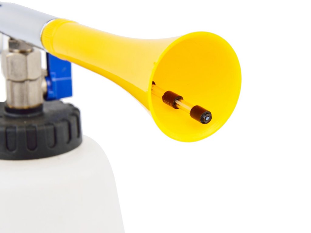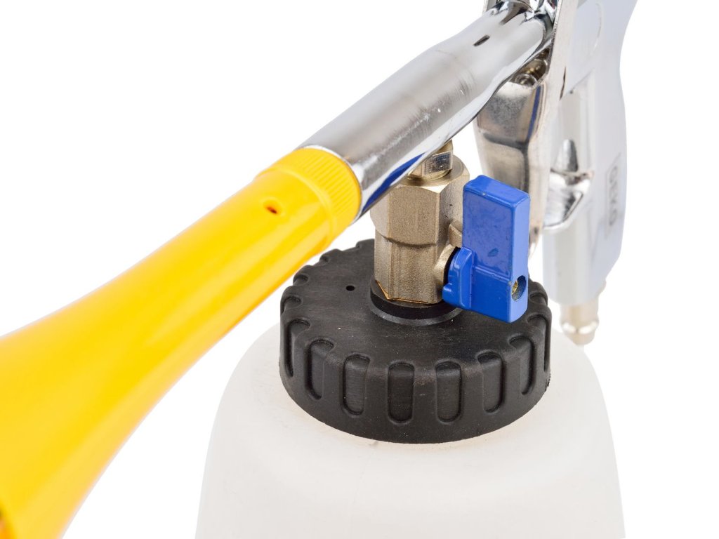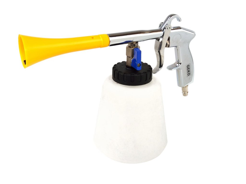 Tento nástroj umožňuje rýchle a jednoduché čistenie všetkých povrchov vozidla. Vyčistí a vysuší sa za niekoľko sekúnd. V kombinácii s kompresorom umožňuje dosiahnuť miesta, ktoré sú bežným ručným umývaním ťažko dostupné. Túto pištoľ používajte na čistenie kobercov, čalúnenia interiéru vozidla, plastových povrchov, diskov, kolies a rôznych častí karosérie.