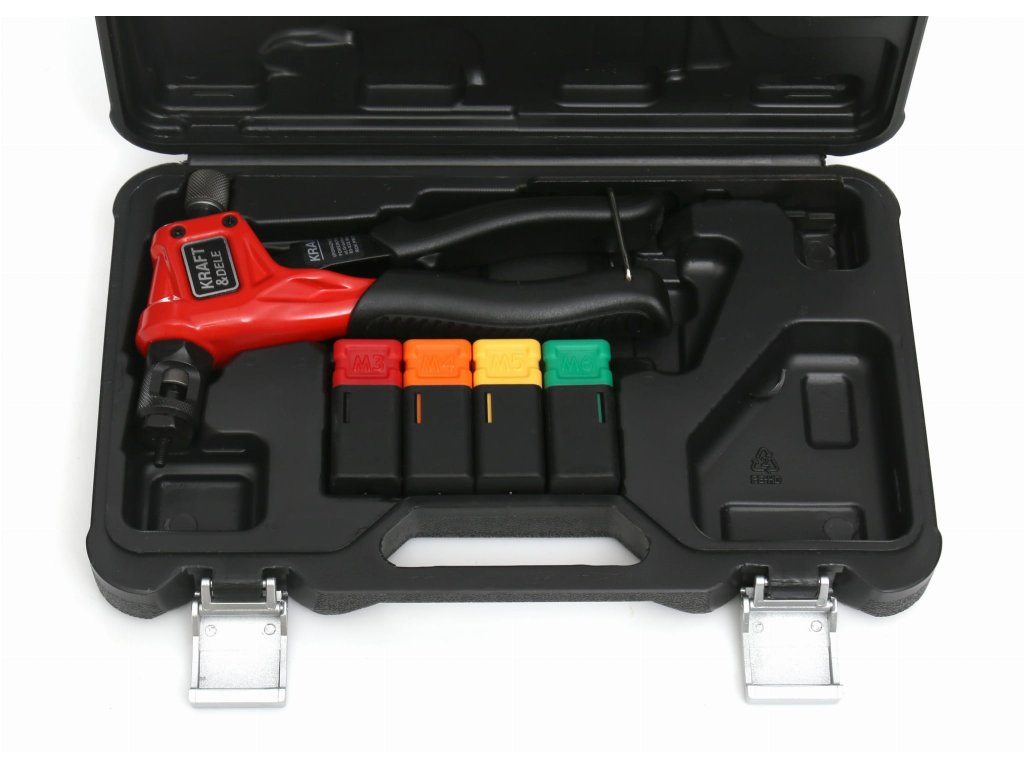 - Hmotnosť 700 g Obsah balenia: ✅ Ručná nitovačka KD10551 ✅ Závitové bity: M3, M4, M5, M6 ✅ Prepravný kufor ✅ Originálne balenie ✅ Doklad o zaplatení DPH alebo faktúra Nitovačka na matice; ručná nitovačka 190 mm; nitovačka M3 M4 M5 M6; nitovačka na vnútorný závit; nitovací nástroj; nitovačka Kraft&Dele
