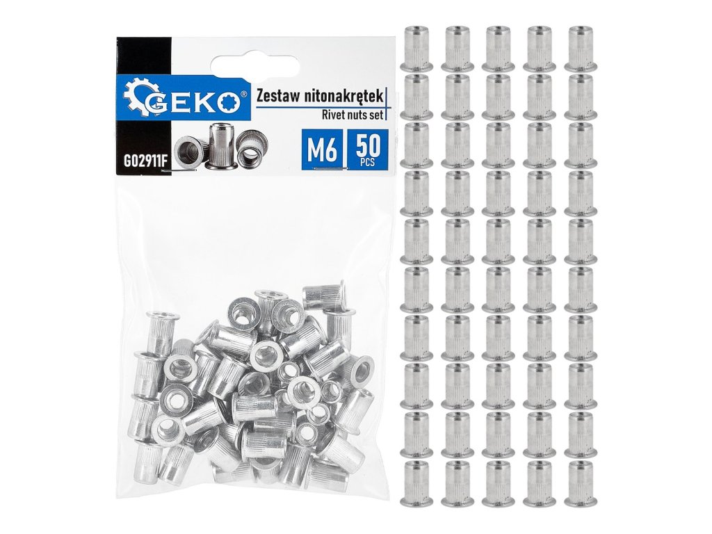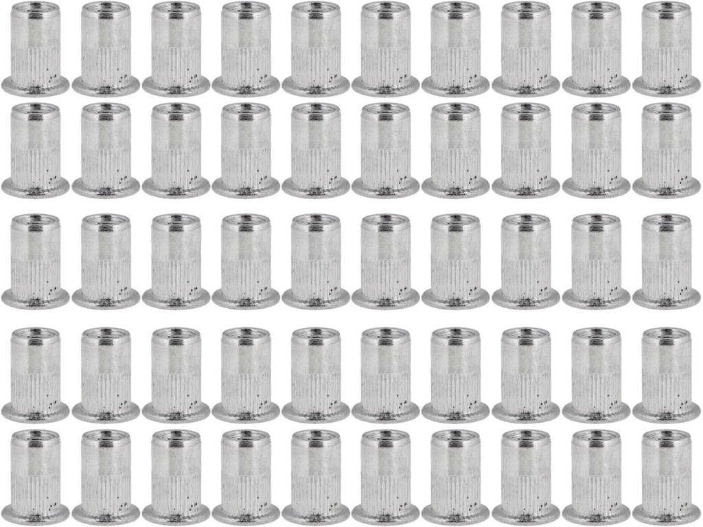 Sada 50 kusovks vysokej kvalityhliníkové nitovacie maticeveľkosť M6 je spoľahlivým riešenímna vytváranie trvalých a presných závitových spojov v plechoch, uzavretých profiloch a iných materiáloch,ktorých hrúbka steny sa pohybuje od 1,0 do 3,0 mm. Ideálne na použitie v automobilovom, priemyselnom, nábytkárskom alebo stavebnom priemysle.