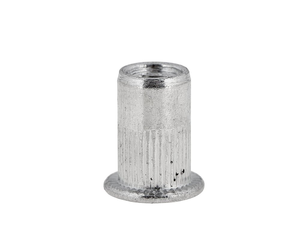 Sada 50 vysokokvalitných hliníkových nitovacích matíc veľkosti M6 je spoľahlivým riešením na vytváranie trvalých a presných závitových spojov v plechu, uzavretých profiloch a iných materiáloch s hrúbkou steny od 1,0 do 3,0 mm..