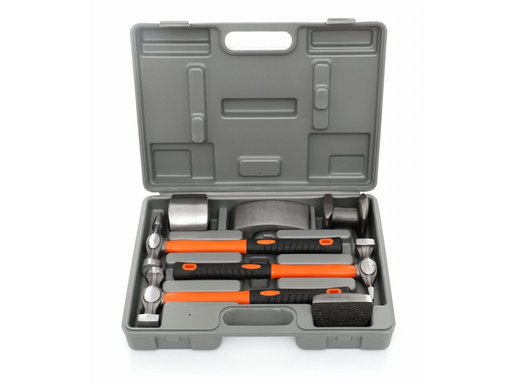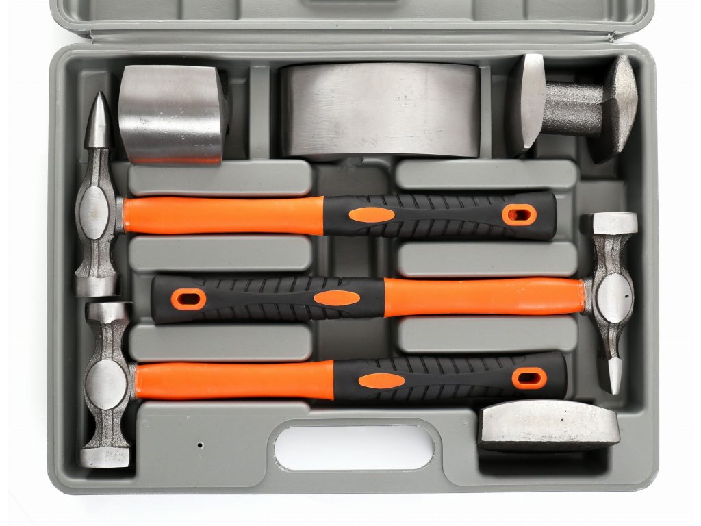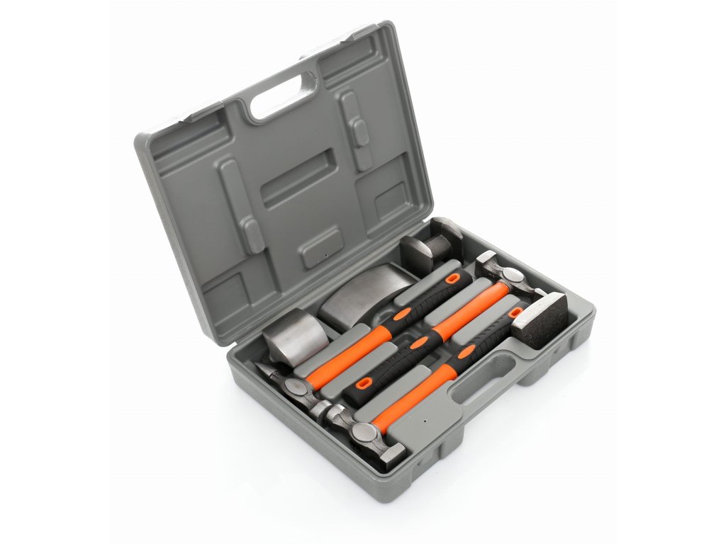 - 3 špeciálne kladivá: s charakteristickými pracovnými plochami a profilovanou rukoväťou zo sklených vlákien s gumovým poťahom pre pohodlné držanie a maximálnu účinnosť.