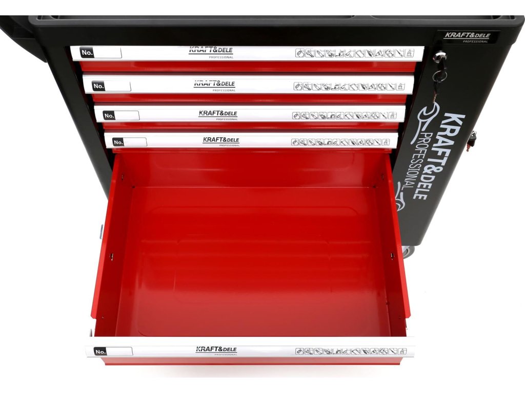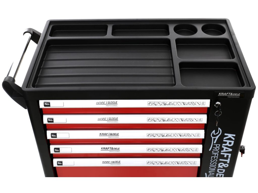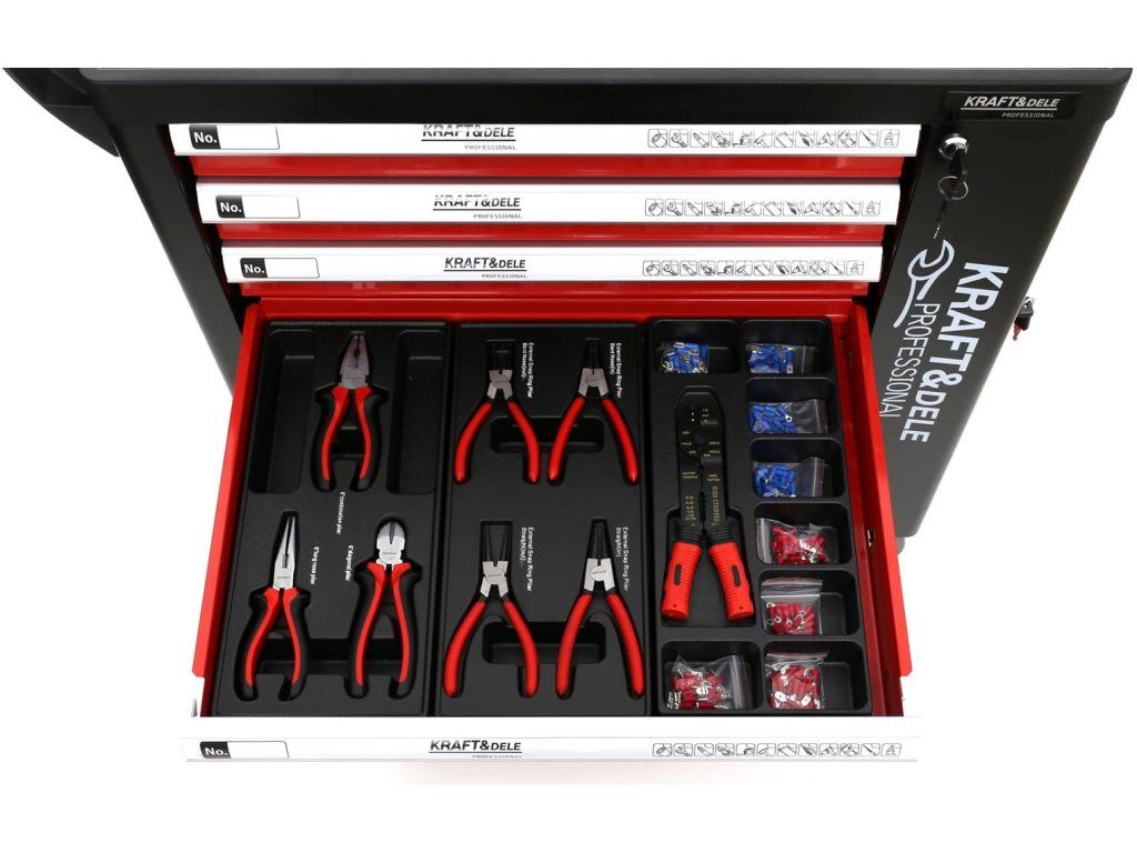 Zlepšite svoju dielňu pomocouskriňa na náradie Kraft&Dele KD362. Je to skvelý pomocník s množstvom užitočných funkcií!kvalitná CrV oceľ zaručuje trvanlivosť akompletná sada 263 nástrojov sa postará o všetko, čo potrebujete opraviť alebo zmontovať. Stabačky na kolieskach môžete ho ľahko premiestniť kamkoľvek. Investujte do poriadku a pohody vo svojej dielni!