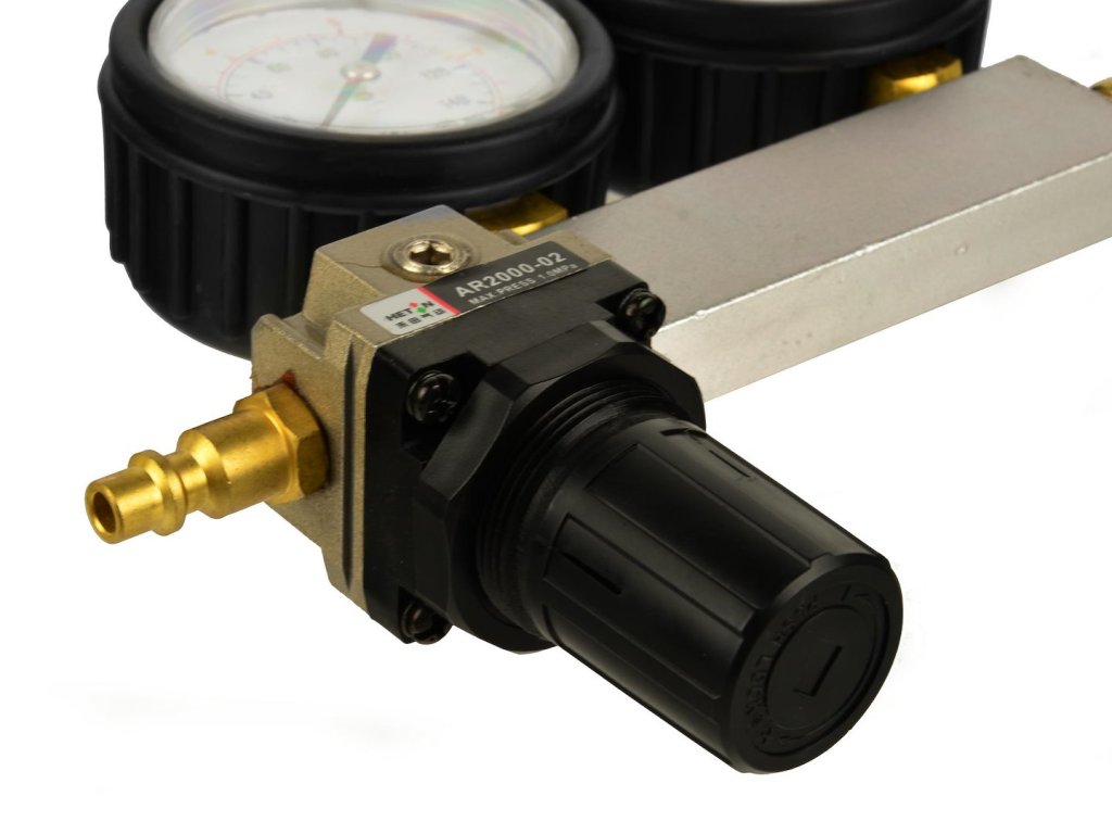 - meracia jednotka s regulátorom prietoku vzduchu a indikátorom úniku/tlaku