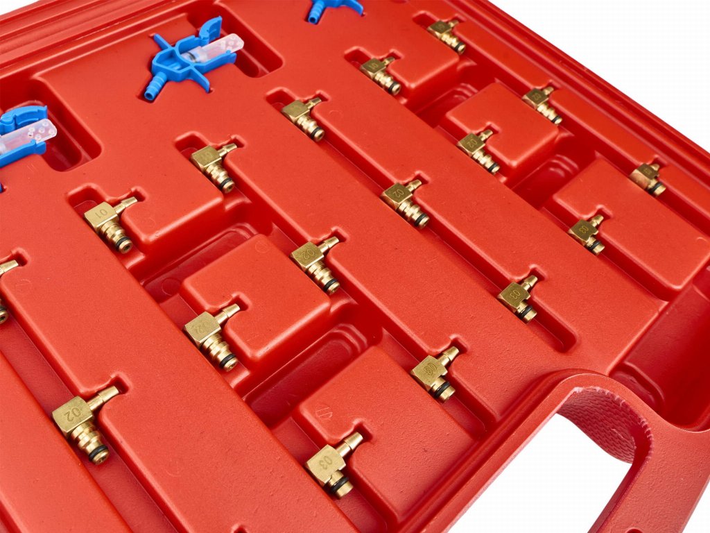 - Obsah balenia Common Rail Fuel Supply: ✅ 6 ks veľkých spojok s hadicami a dýzami pre systémy Bosch ✅ 6 ks malých spojok pre systémy Bosch ✅ 6 ks spojok pre systémy Delphi ✅ 6 ks spojok pre systémy Denso ✅ 6 ks spojok pre systémy Siemens ✅ Plastový prepravný kufor