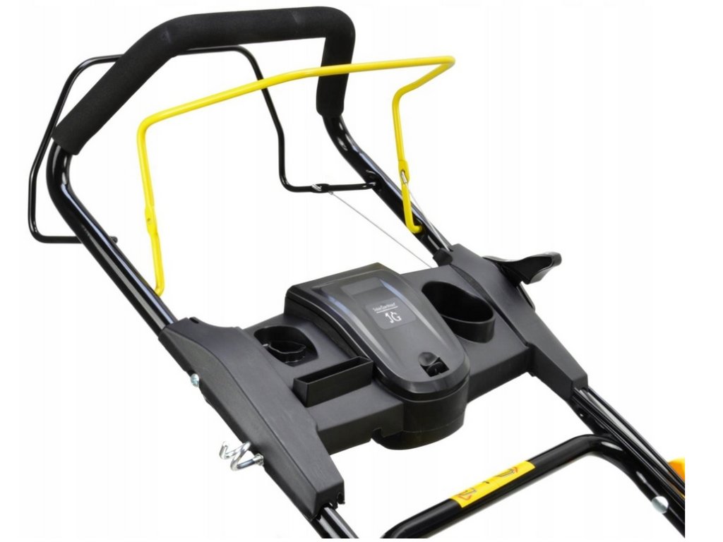 - Výkonný motor: 140 cm³ štvortaktný benzínový motor poskytuje dostatočný výkon na rýchle a efektívne kosenie