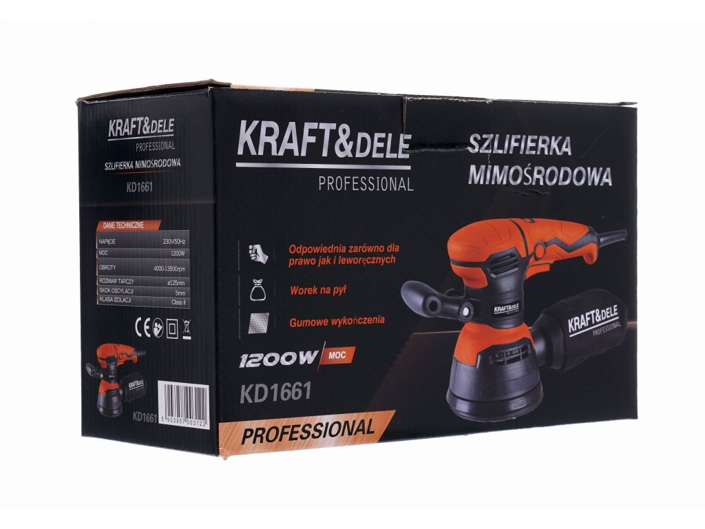 - TECHNICKÝ VÝROBOK Značka: KRAFT&DELE Model: KD1661 Typ zariadenia: Excentrická brúska Napájanie: 230V / 50Hz Príkon: 1200 W Otáčky: 4000-135000 ot/min Veľkosť kotúča: 125 mm Upevnenie kotúča: kotúče na suchý zips Priemer oscilačného pohybu: 5 mm Hmotnosť: 1,2 kg