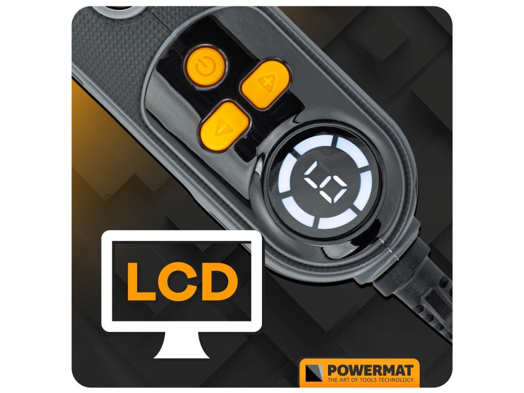 - LCD displej zobrazuje aktuálne otáčky a režim prevádzky pre jednoduché ovládanie.