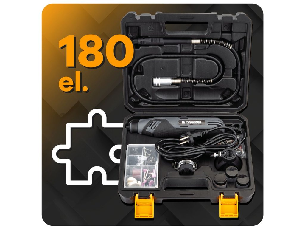 - Bohatá sada príslušenstva s viac ako 180 kusmi príslušenstva - frézy, kotúče, vrtáky a ďalšie.