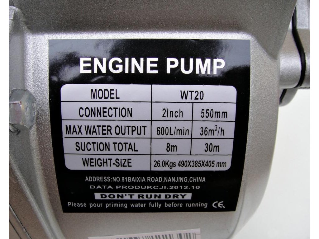 - Výkon motora: 5,5 kW - Výkonný benzínový motor poskytuje dostatočný výkon na čerpanie vody vo veľkých objemoch a na dlhšie vzdialenosti.