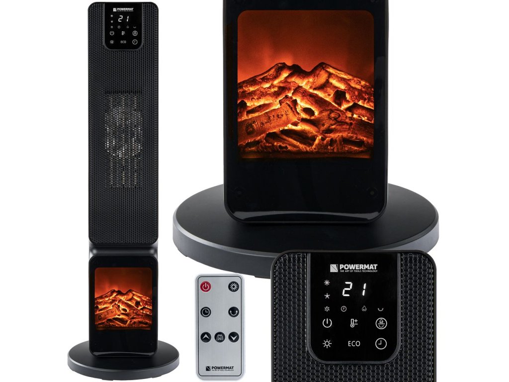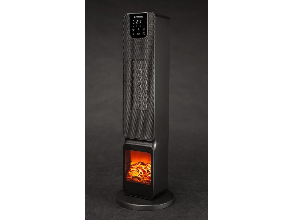 Štýlové a účinné vykurovanie s atmosférou plameňov:POWERMAT PM-GKL-3500DLK je stĺpcovýkeramický radiátor s "komínovým" efektom, ktorý kombinujedve úrovne výkonu (1000/2500 W),Režim ECO, dotykLCD adiaľkové ovládanie. Vhodný do obývacích izieb, kancelárií a na chaty - rýchlo sa zahrieva a zároveň skvele vyzerá.
