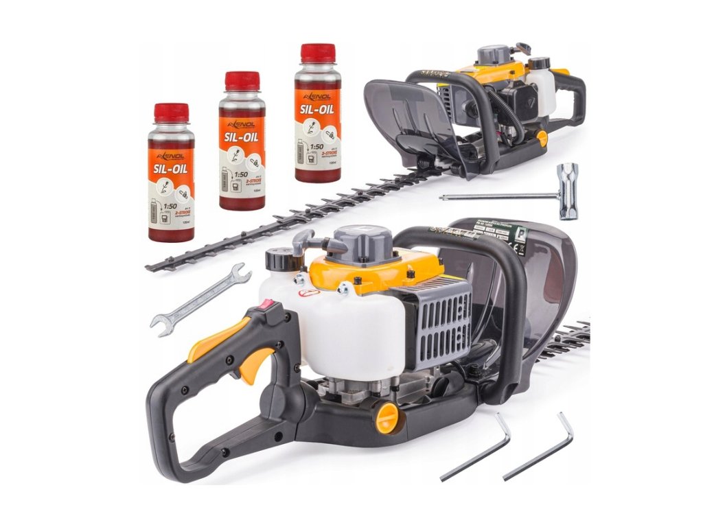 - Výkonný spaľovací motor - ideálny na husté živé ploty a silnejšie konáre.