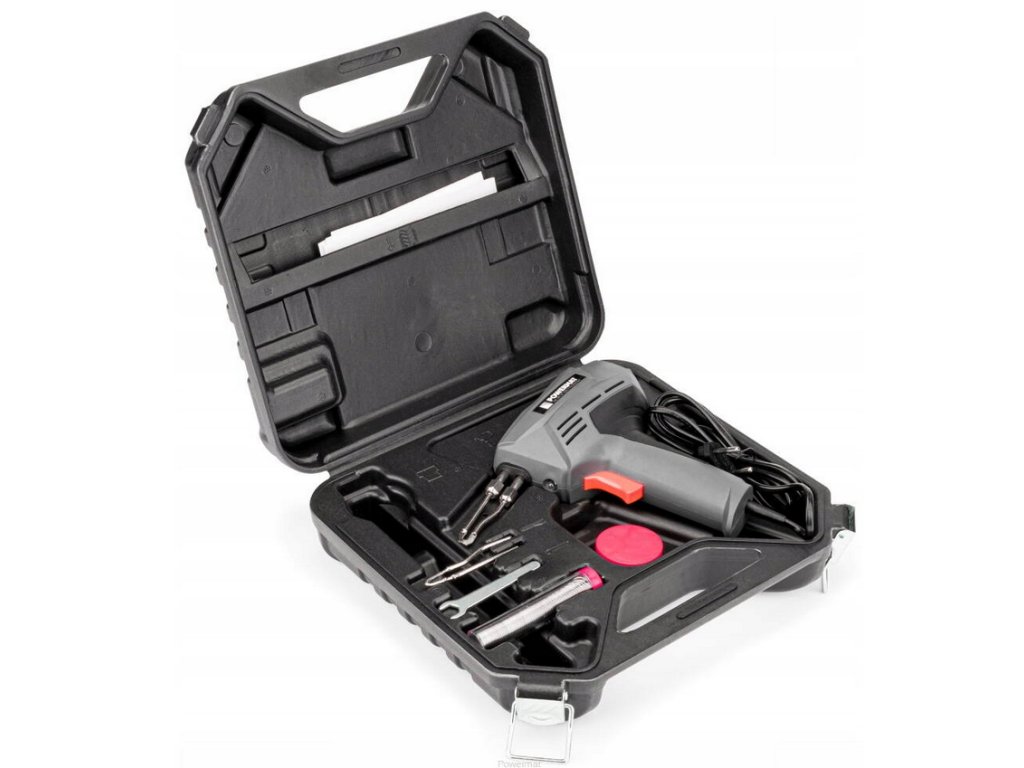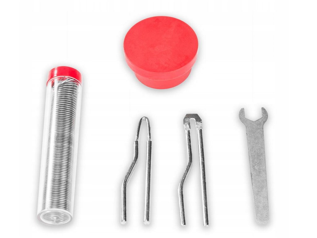 - Spájkovačka je vybavená osvetlením LED, ktoré vám umožní viac sa sústrediť na spájkované miesto. Sada obsahuje praktický kufrík s príslušenstvom.
