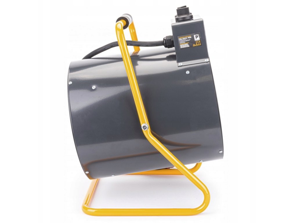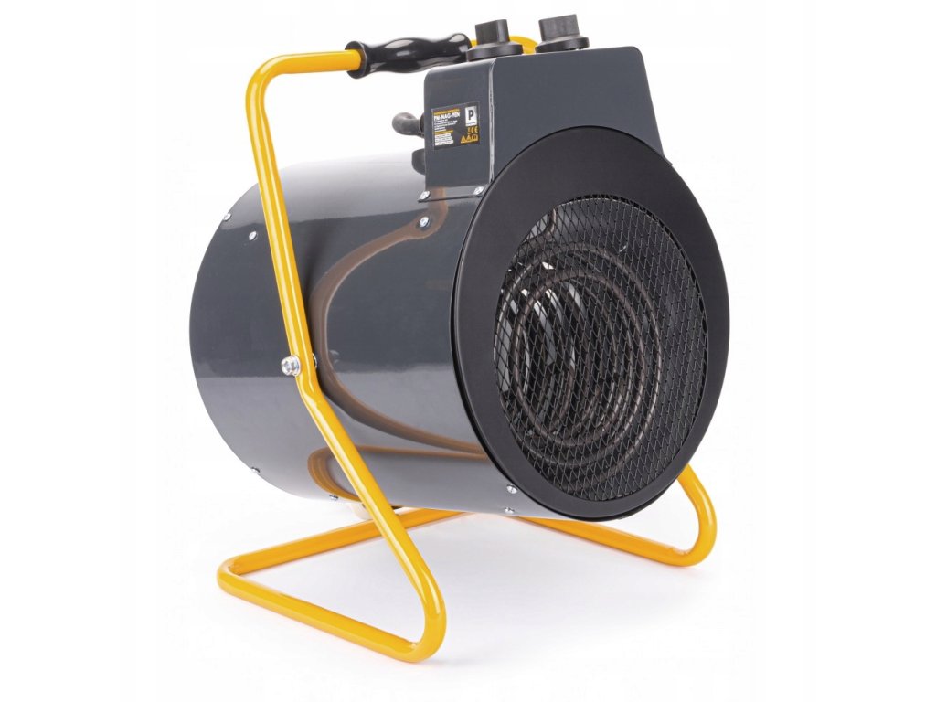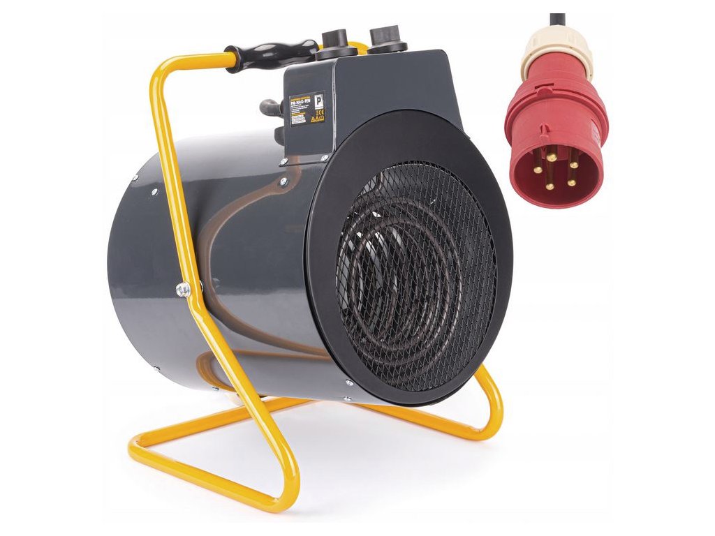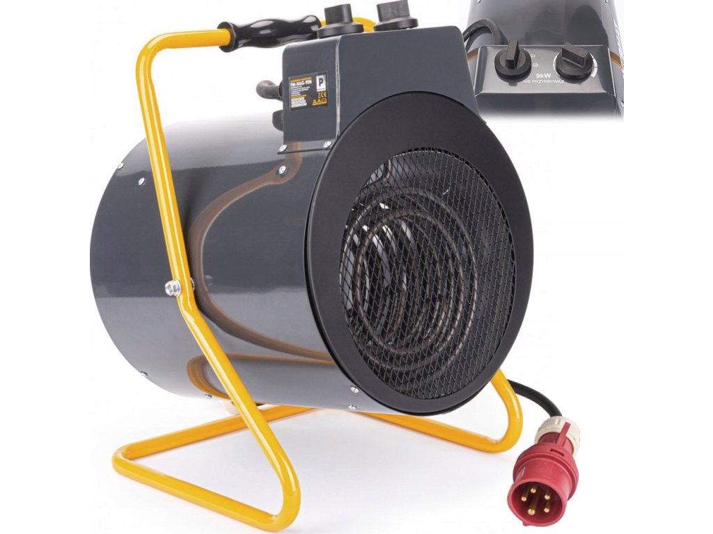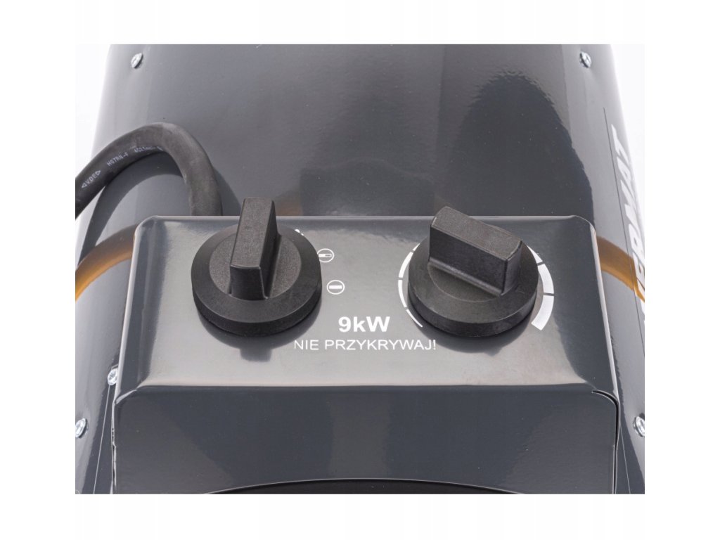 Výkonný teplovzdušný ohrievač s až9 kW, napájanie3×400 V/50 Hz. Ponúka tri režimy výkonu (0 / 4,5 kW / 9 kW), integrovaný termostat a ventilátor, ktorý rovnomerne rozvádza teplo - ideálne pre garáže, dielne, sklady a montážne haly.