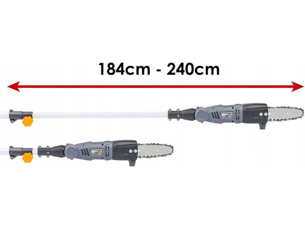 Dĺžka vodiacej tyče je 25 cm a pracovná dĺžka je 18 cm. Píla je vyrobená z vysokokvalitných materiálov, ktoré zaisťujú dobrú stabilitu a následne menšiu únavu pri práci. Píla má automatický systém mazania reťaze. Hladinu oleja možno ľahko skontrolovať pomocou priehľadnej mierky. Veľkou výhodou píly je jej hmotnosť iba 3,8 kg. Rýchlosť reťaze 10 m/s. Powermat PM-EPW-1000 elektrická reťazová píla Výkon 1-2 HP