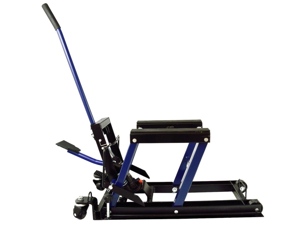 Výťah vyrobený zo silných hrubostenných oceľových profilov Kvalitné kolieska na ľahký pohyb po dielni Prvky, na ktorých je motocykel umiestnený, sú vybavené protišmykovou gumou Minimálna výška: 13
