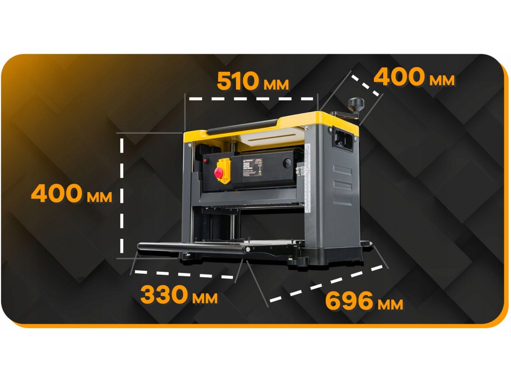 Kompaktný a stabilnýrozťahovací hoblík na presné porovnanie hrúbky mäkkého a tvrdého dreva.Motor 2000 W anožový hriadeľ 8000 otáčok za minútu s dvomaNože HSS zaručuje čistý záber bez pretrhnutia vlákien. Pracovná šírka330 mm, jednorazový výber do3 mm arýchlosť posuvu 6 m/min urýchľuje spracovanie aj väčších kusov. Výška obrobku6-160 mm a tabuľka330 × 300 mm pokrývajúce potreby hobby a profesionálnych dielní.