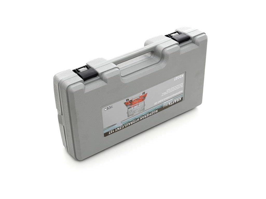 - TECHNICKÝ VÝROBOK Značka: KRAFT&DELE Model: KD327 Typ zariadenia: hydraulické rozmetadlo Maximálny tlak: 10 ton Dĺžka valca: 322 mm Priemer piestu: 33 mm Priemer valca: 56 mm Maximálny zdvih piestu: 131 mm (použitím predlžovacích prvkov sa zdvih zvyšuje) Tlak rozmetadla "krokodíl": hmotnosť celého kufra: 32 kg Rozmery kufra: 73 × 40 × 17 cm