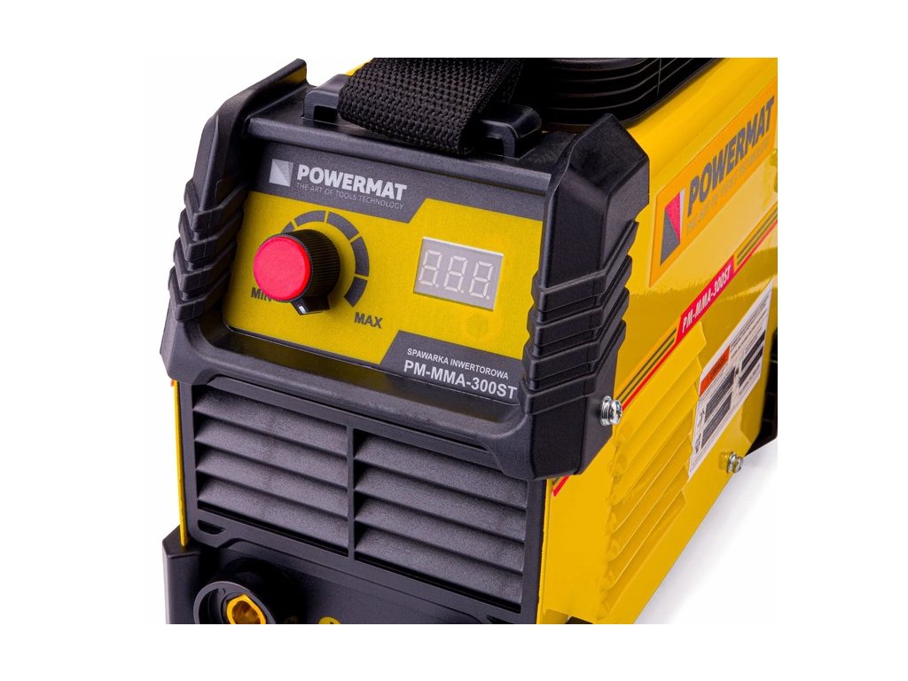 PM-MMA-300ST je invertorový zvárací stroj založený na účinných tranzistoroch IGBT. Je vybavený LCD displejom zobrazujúcim aktuálny zvárací prúd, nastavovacím gombíkom s plynulou reguláciou.