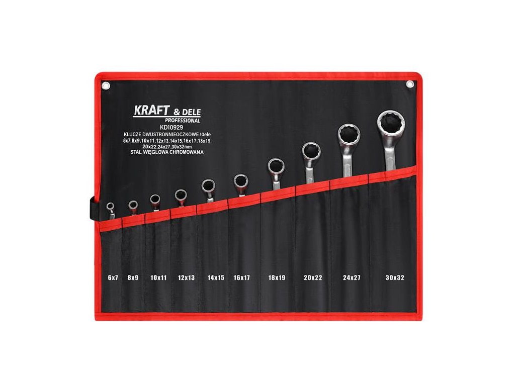 - Rôzne veľkosti kľúčov: 6x7, 8x9, 10x11, 12x13, 14x15, 16x17, 18x19, 20x22, 24x27, 30x32 mm