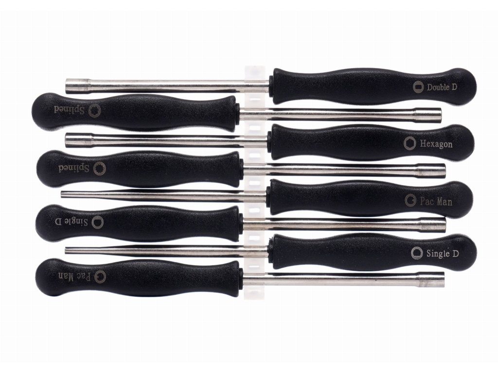 - 8 nastavovacích kľúčov, vrátane: jednoduché D, 2x SzesciokatWielowypust, 2x Podwojne D, Pac Man 2x