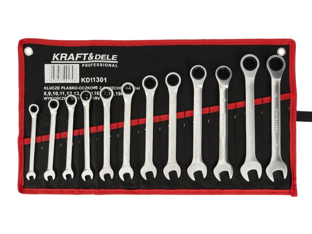 Táto sada kľúčov Kraft&Dele sa okamžite stane vaším obľúbeným náradím. Vďakakvalitná CrV oceľa špeciálnena začiatkuna každom kľúči môžete ľahko a rýchlo uťahovať a povoľovať bez toho, aby ste museli šmátrať. Kľúče súkompaktnéa ichprotišmyková úpravaje skvelý na prácu s mastnými povrchmi. Ideálny pre profesionálov a domácich majstrov!