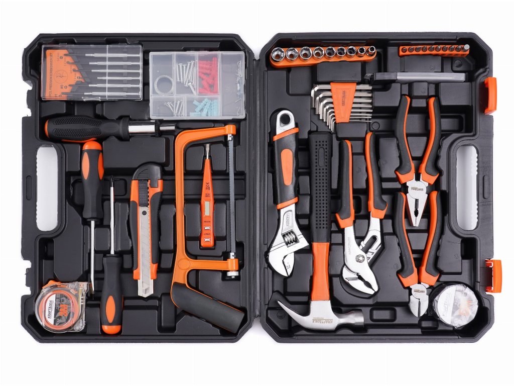 - univerzálna 100-dielna sada náradia - odolné náradie z kovaného chrómu