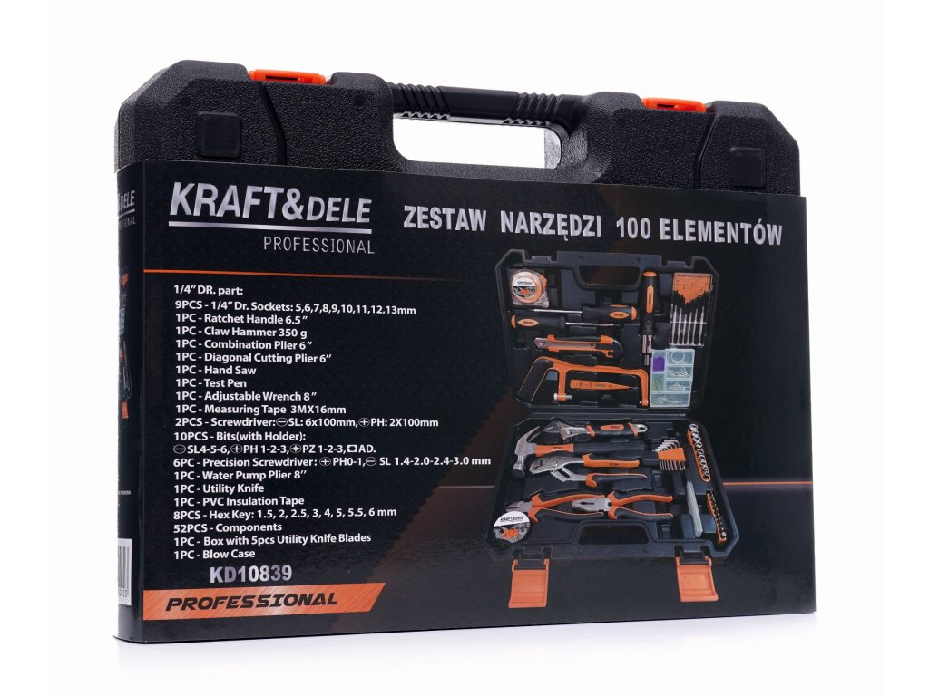 Univerzálna100-dielna súprava náradia Kraft&Dele KD10839 ponúka všetko, čo potrebujete naopravy v domácnosti, údržba automobilov a práce v dielni. Nástroj je vyrobený z odolnéhochróm-vanádiová oceľ (CrV)čo zaručuje dlhú životnosť a vysokú odolnosť proti opotrebovaniu. Všetko je prehľadne uložené v pevnom plastovom kufríku s ergonomickou rukoväťou.
