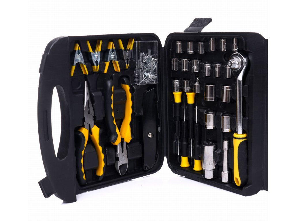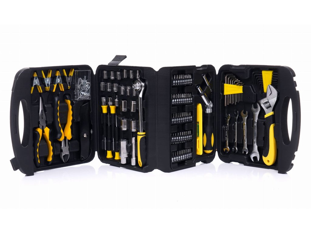 Ak hľadátekompletná sada nástrojovaby ste si uľahčili prácu, potom je táto súprava v kufríku ideálnou voľbou. Obsahuje117 rôznych nástrojov a vďaka chróm-vanádiová oceľ všetko je veľmi odolné. Puzdro je navrhnuté tak, aby boloergonomické a ľahko prenosné. Ušetríte čas vďaka jednoduchému prístupu k nástrojom a všetky komponenty súprakticky organizované.