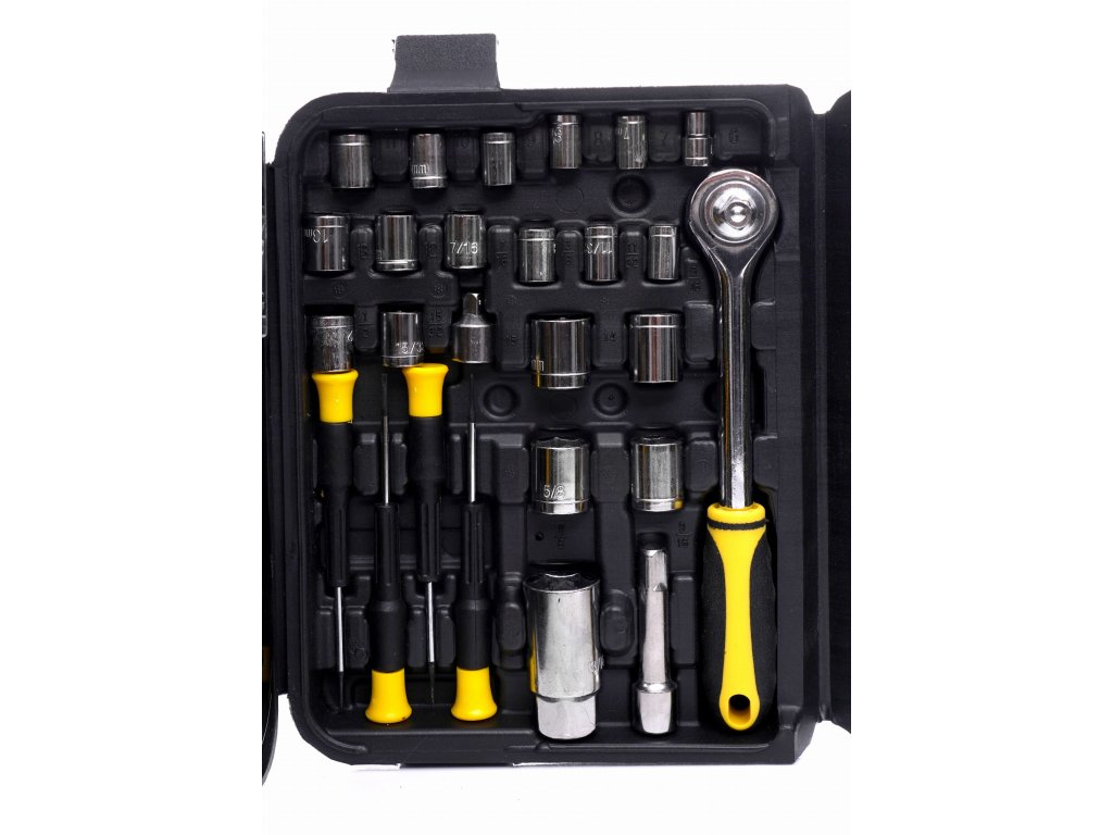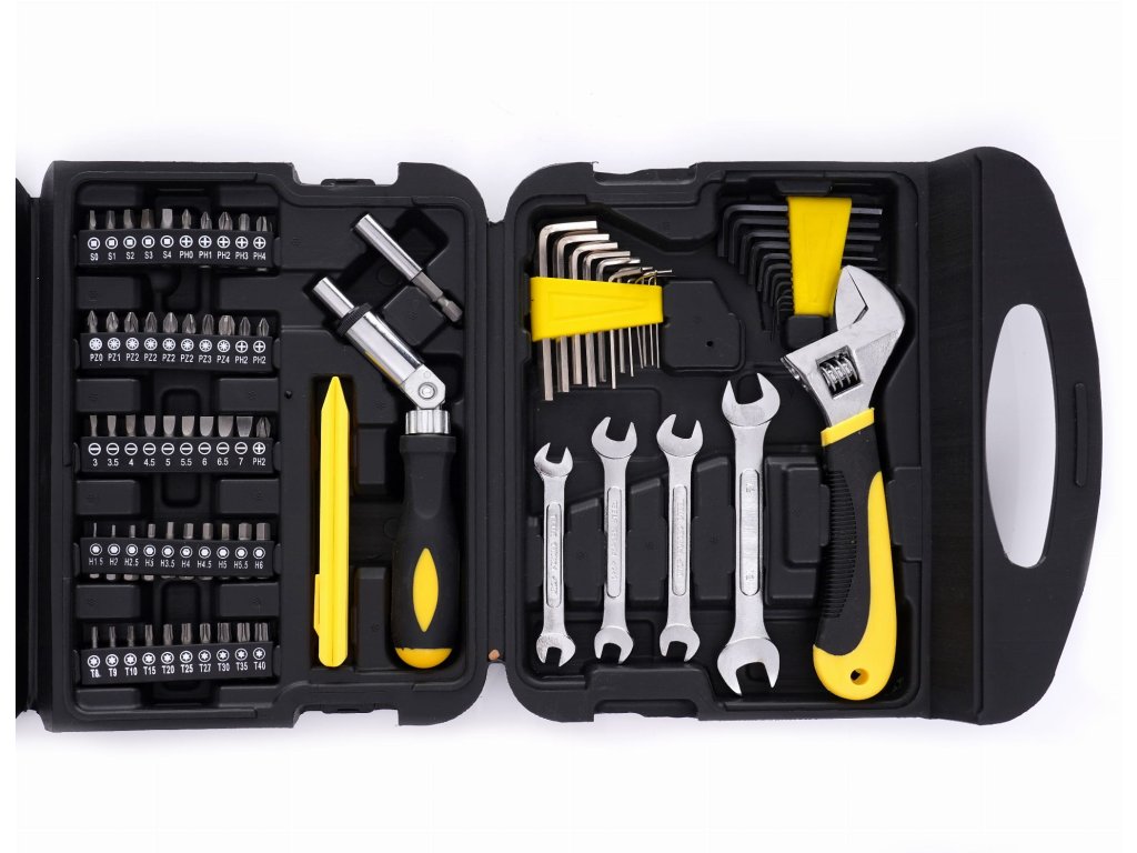 - Kompletná sada: Obsahuje ploché kľúče, nástrčné hlavice, račne a ďalšie nepostrádateľné náradie.