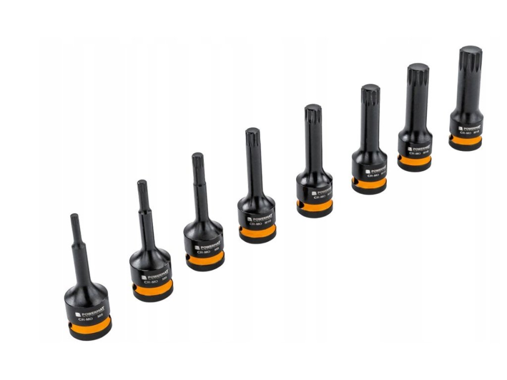 Táto **Sada rázových kľúčov 1/2″** ponúka 8 kvalitných dielov vyrobených z odolnej Cr-Mo (chróm-molybdénovej) ocele, ktoré zvládnu náročné nastavovacie a opravárenské úlohy. Vďaka systému Spline majú kľúče **lepší kontakt s uťahovanou skrutkou** a minimalizujú riziko poškodenia.
