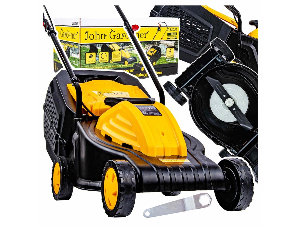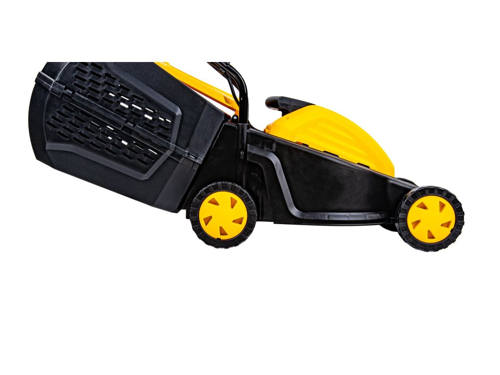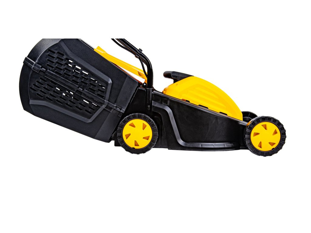 Elektrická indukčná kosačka 32 cm Technické údaje Napájanie: 230 V ~ 50 Hz Príkon: 1200 W Otáčky: 3000 ot. 320 mm Šírka kosenia: 320 mm Výška kosenia: 25 / 40 / 55 mm Stupne nastavenia výšky: 3 Kapacita koša: 3