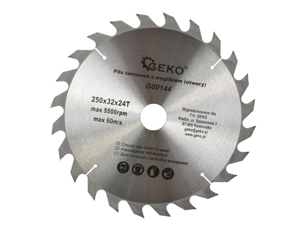 Drevené koleso vyrobené z vysokokvalitnej ocele. Určený na presné rezanie dreva, drevotriesky a stolárskych výrobkov. Ideálny pre profesionálne stolárske a tesárske dielne a pre stavebné práce.