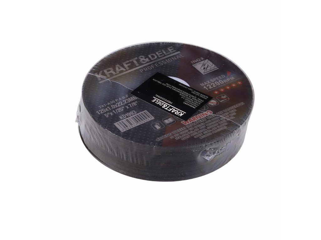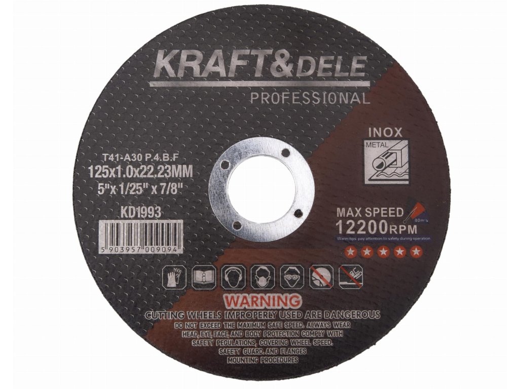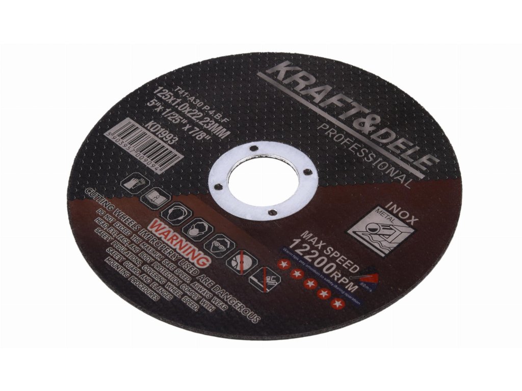 S našourezné kotúče na kov od spoločnosti Kraft&Dele je každá práca s uhlovou brúskou hračkou. Kotúče s priemerom125 mm a hrúbka1,0 mm zabezpečuje efektívne rezanie. Ich výhody sú: