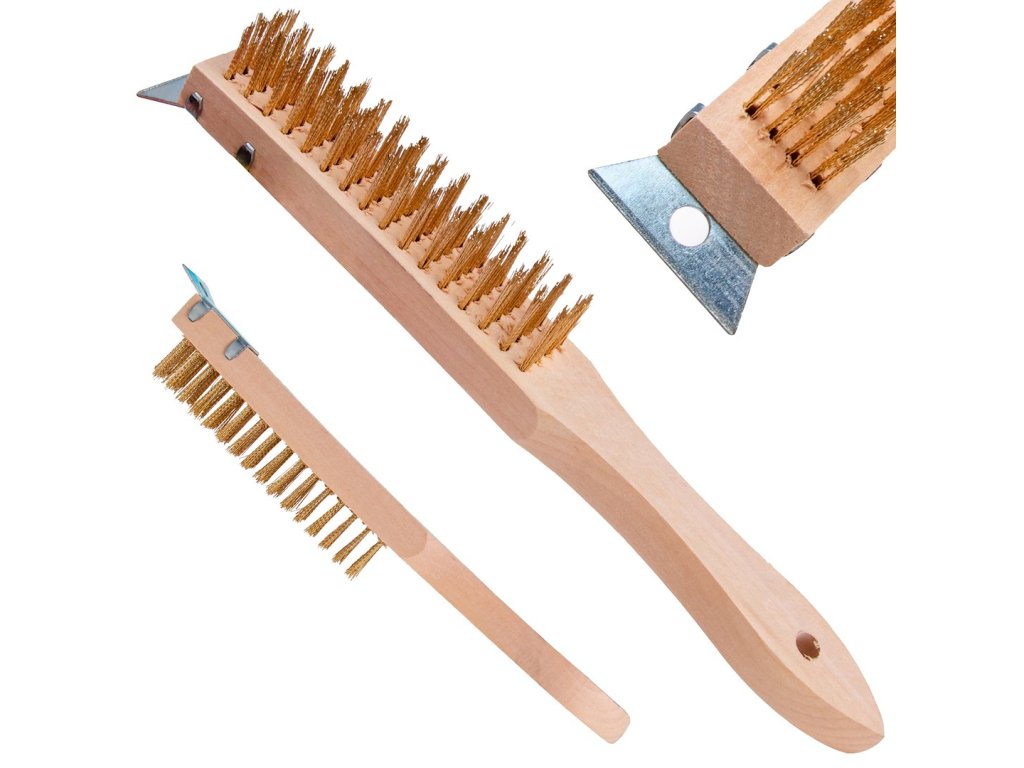 Žltá drôtená kefa na hrdzu, 4 rady so škrabkou na drevo (12/120)