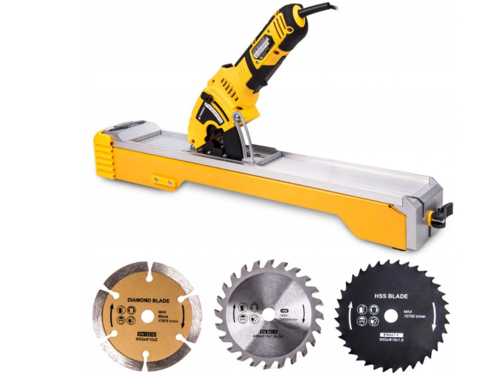 Píla sa dodáva so súpravou rezných nožov. Sada obsahuje tri rezné kotúče s priemerom 85 mm, ktoré možno použiť na rezanie betónu, tehál, dreva, HDF dosiek, PVC dosiek, hliníka a všetkých druhov materiálov, pre ktoré sú prispôsobené aktuálne nainštalované rezné kotúče. Vďaka vysokému výkonu píly, skonštruovanej na báze uhlovej brúsky, by si mala rýchlo a presne poradiť s väčšinou materiálov.