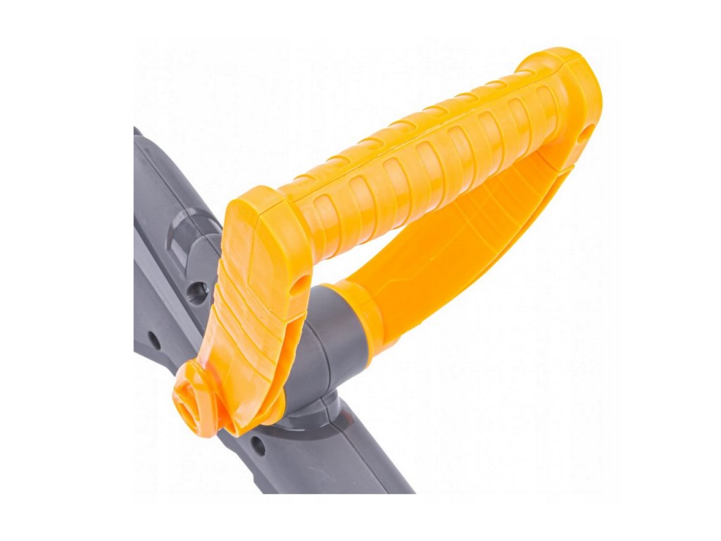 Revolučný dizajn umožňuje prispôsobiť zariadenie vlastným preferenciám a pracovať na ťažko prístupných miestach. Rukoväť je potiahnutá gumou, aby sa zvýšila bezpečnosť uchopenia, a tiež sa dá nastaviť o 180° bez použitia náradia, odskrutkujte krídlovú skrutku a nastavte si preferovaný uhol. Tlačidlo bezpečnostného zámku znižuje riziko náhodnej aktivácie zariadenia.