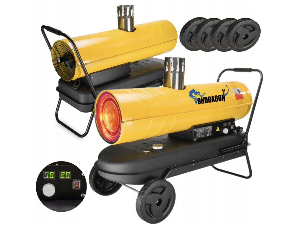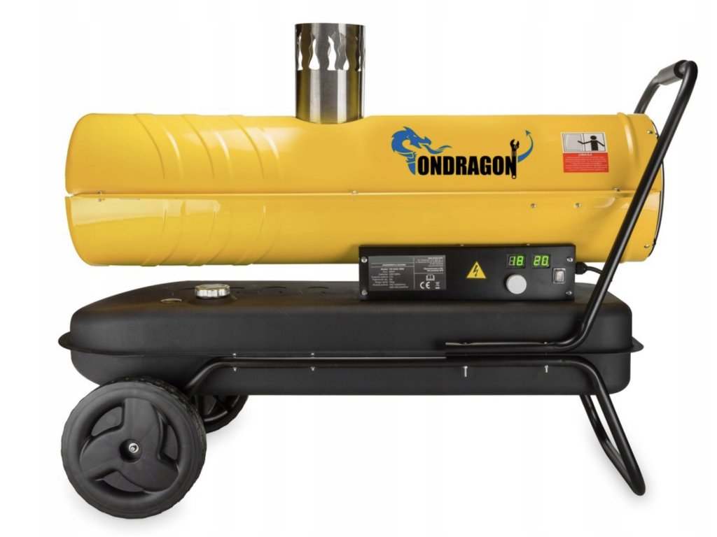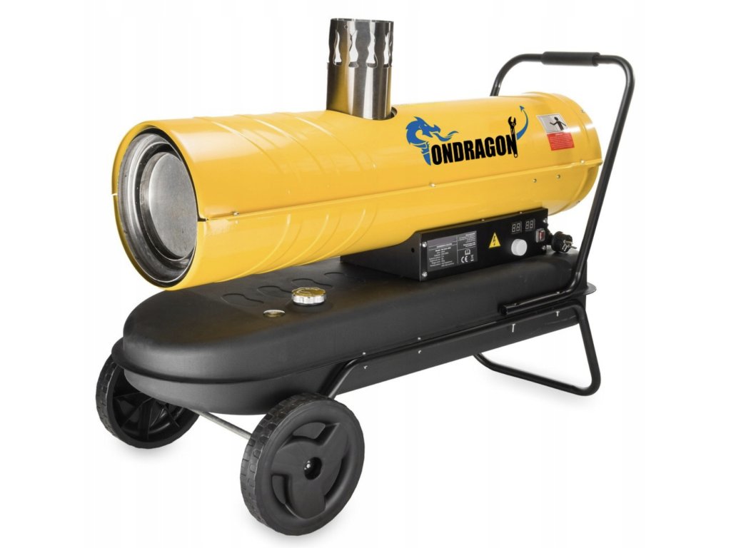 Výkonný ohrievačOndragon 30 kW pre stredne veľké až veľké priestory (dielne, sklady, budovy).Komínový dymovod zabezpečuje čistý vykurovací vzduch v miestnosti, pričomdigitálny termostat s LCD displejom udržiava nastavenú teplotu a šetrí palivo.