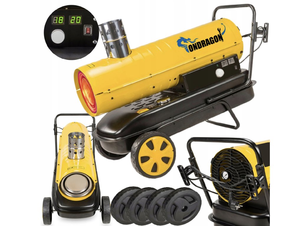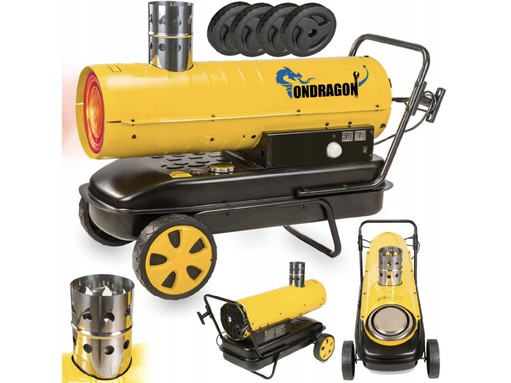 Profesionálny ohrievačOndragon 40 kW je určený na vykurovanie stredných a väčších priestorov - skladov, dielní, hál alebo budov. Vďakaodvod spalín cez komín pracuje čisto a bezpečne, bez výparov v priestore.Digitálny termostat s LCD displejom zaručuje pohodlné a presné ovládanie, zatiaľ čo výkonný ventilátor zabezpečuje rovnomerné rozloženie tepla.